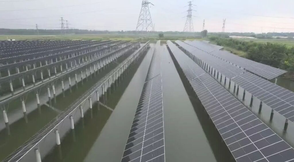 该项目于今年3月并网发电,采用“水上光伏发电、水下生态养殖”的渔光互补模式,能够实现土地资源的高效利用,为当地低碳可持续发展目标贡献力量: