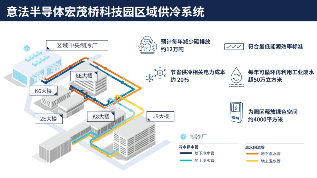 意法半导体宏茂桥科技园的区域供冷系统,已于2025年四季度正式投入运营,该项目由新加坡能源集团与大金空调(新加坡)的合资公司设计、建设和运营管理,是新加坡规模最大的工业区域供冷系统。